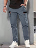 بنطلون رمادي للرجال للأنشطة الخارجية مثل التنزه والصيد والتخييم وتسلق الجبال والرياضة والجري والملابس الرسمية اليومية، له سحاب وجيوب كبيرة وخصر مطاطي وجيوب مائلة وساق مستقيمة